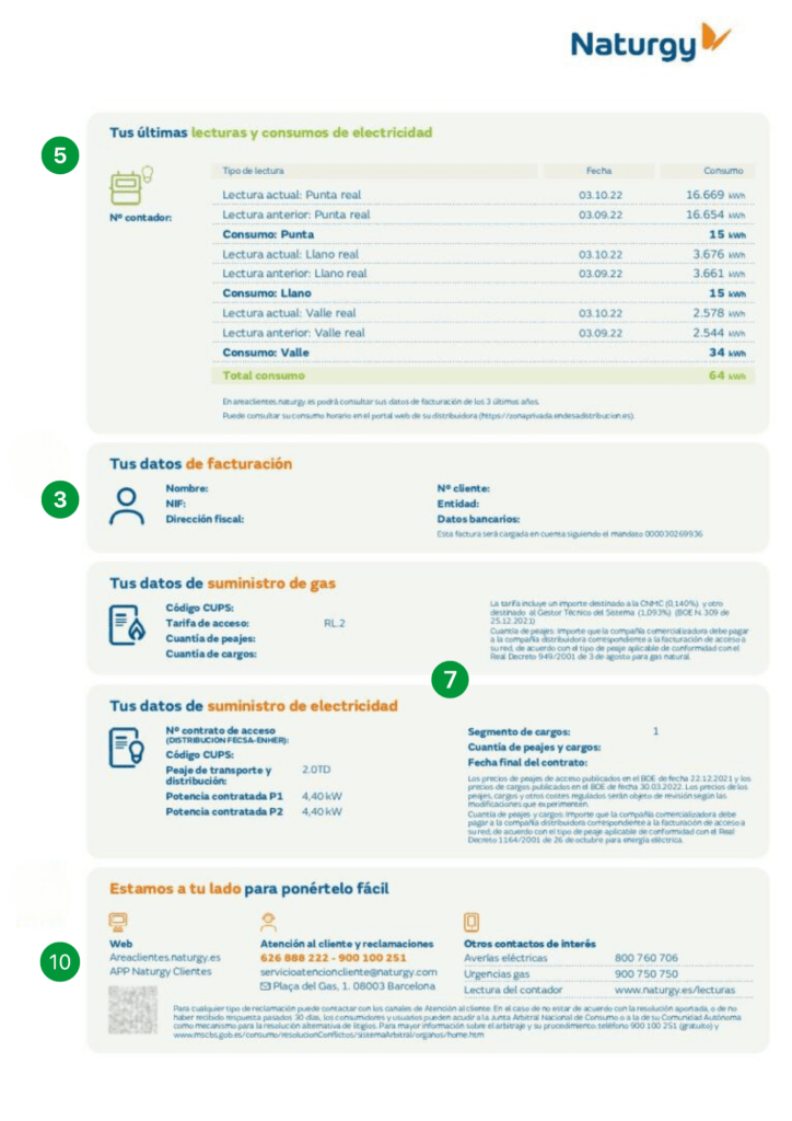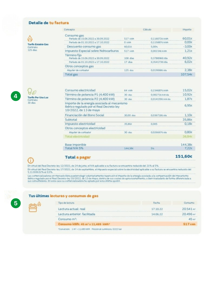 - Services and other items: this is where the discounts (if you have any) that are applied to you according to the gas contract you have taken out, are included.